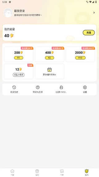 点击下方我的按钮,即可进入个人中心页面,可以查看自己的能量,以及系统设置等。