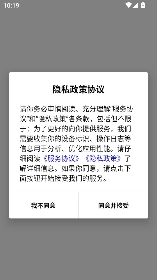 1.首先打开软件阅读“隐私政策协议”后,点击“同意并接受”按钮进入