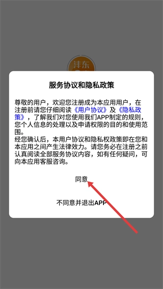 1、会弹出【服务协议和隐私政策】的弹窗,需要先阅读【用户协议】与【隐私政策】以了解相关规则,之后点击【同意】按钮,才能继续进行注册流程。