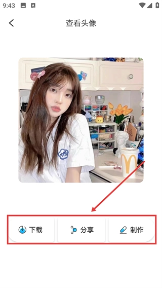 3、在头像详情页面,可通过【】【分享】【制作】等功能,对该头像内容进行后续操作。
