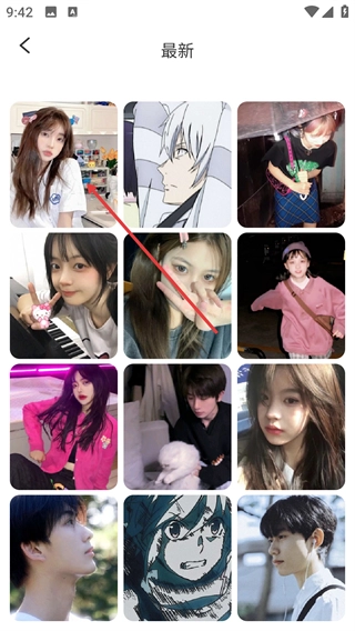2、在最新内容页面,选择目标头像内容,点击进入该内容的详情展示界面。