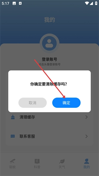 3、在确认弹窗中,点击【确定】按钮,执行缓存清理操作。