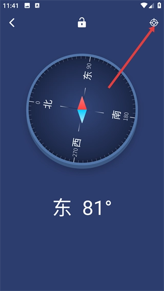 3、进入指南针界面后,点击右上角对应图标,可跳转至指南针的校准操作页面,以便优化功能精度。