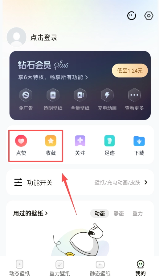 2、想要体验手机倾斜时壁纸元素也会移动的效果,就点击底部导航栏的“重力壁纸”进入专区。