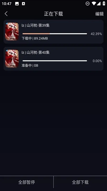 3.之后根据自身需求,自行选择好想要缓存的集数,系统便会自动启动缓存流程。