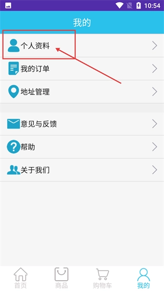 2、点击底部导航栏的【我的】进入对应页面,可找到【个人资料】【我的订单】【地址管理】等功能选项。