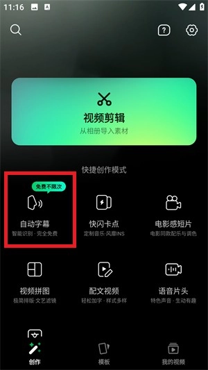 2、点击开始创作就可以对于视频中的声音进行识别。