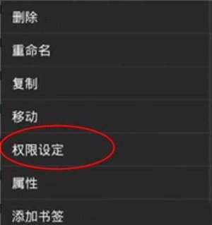 4、长按文件,并在弹窗中选择"权限设定"。