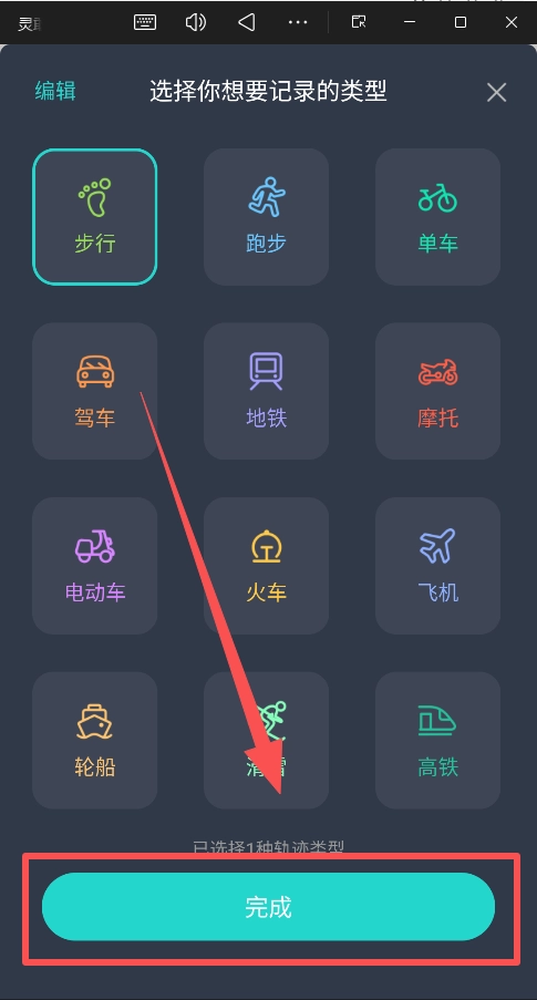 3、选择好自己想要记录的类型后,点击完成。