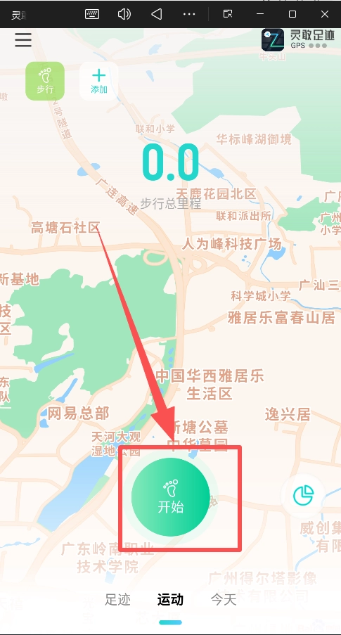 4、然后点击 “开始”,App便会开始针对这次行程进行记录,结束后会生成一份独立的轨迹报告。