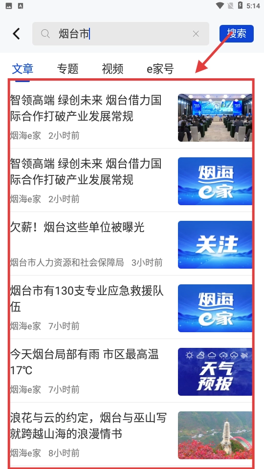 1、在搜索框中输入你想要查找的内容名称,点击【搜索】按钮,即可查看搜索结果列表。