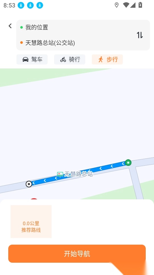 5、如此就可查看公交站点的导航位置,点击“开始导航”按钮进行下一步。