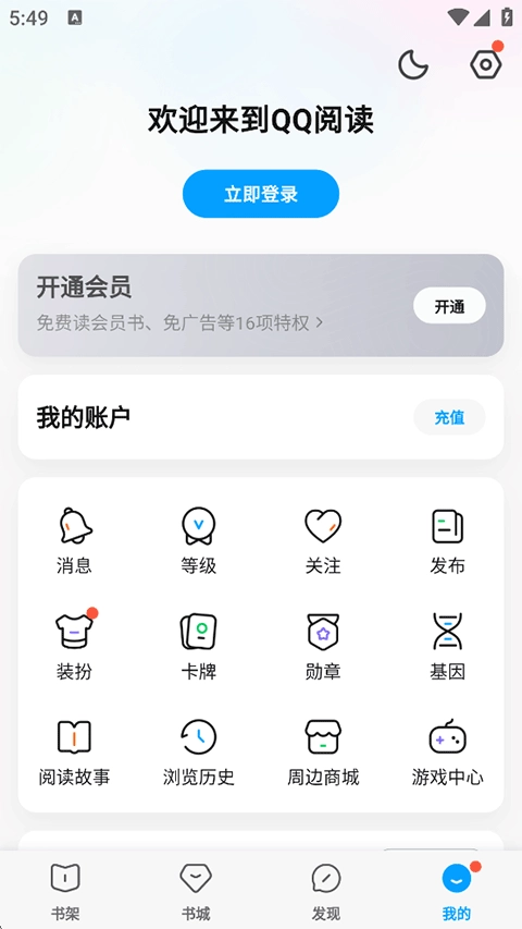 1、在手机上打开QQ阅读APP进入首页后,点击底部导航栏的“我的”选项,即可进入个人中心页面。