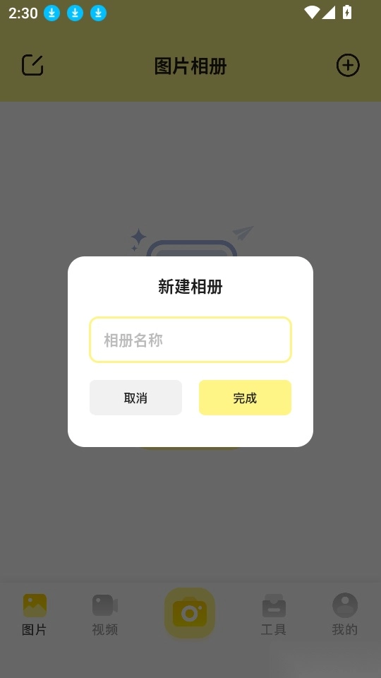 3、进入软件的图片相册界面后就可点击中间的“新建相册”按钮来进行下一步。
