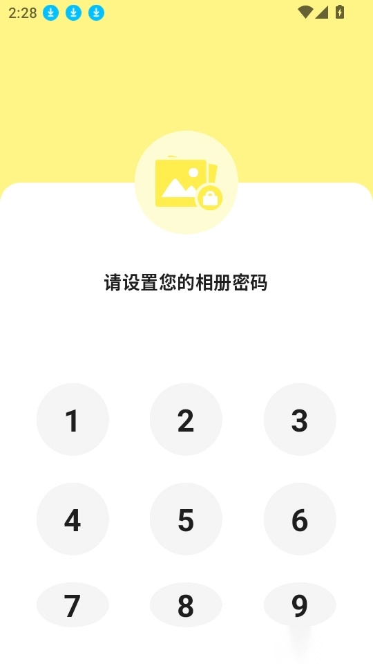 2、之后就可在设置密码界面来设置相册登录密码,实时设置验证,然后输入密码进入软件。