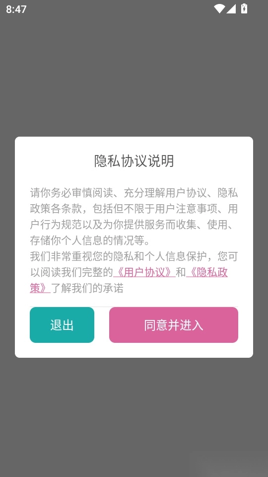 1.首先打开软件阅读“隐私协议说明”后,点击“同意并进入”按钮到