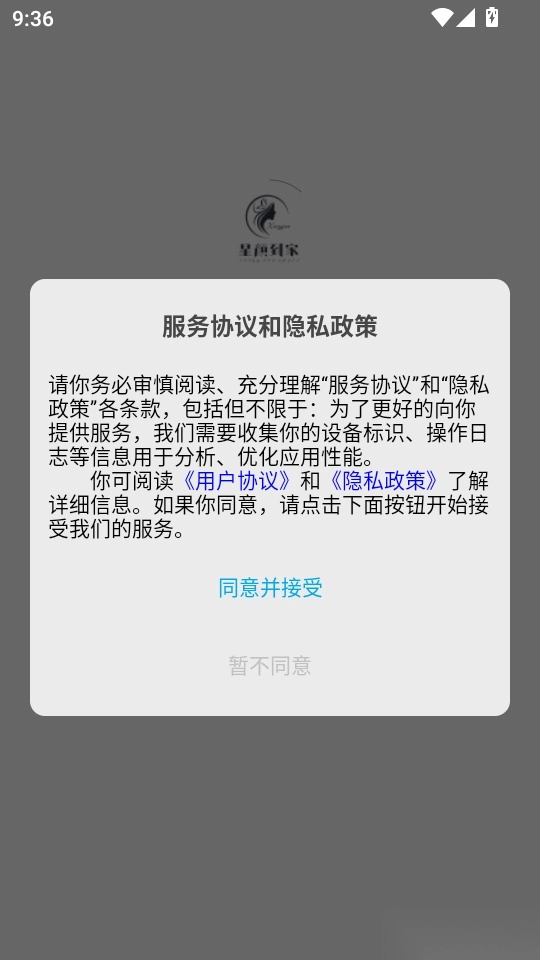 1.首先打开软件阅读协议和隐私政策后,点击“同意并接受”按钮进入