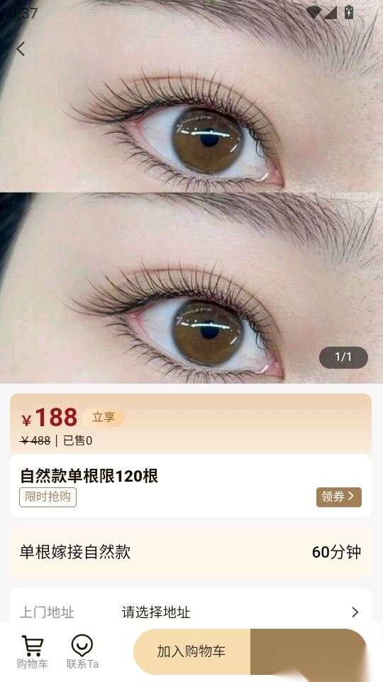4.如此进入服务项目的详情界面,点击底部“添加购物车”按钮就完成了