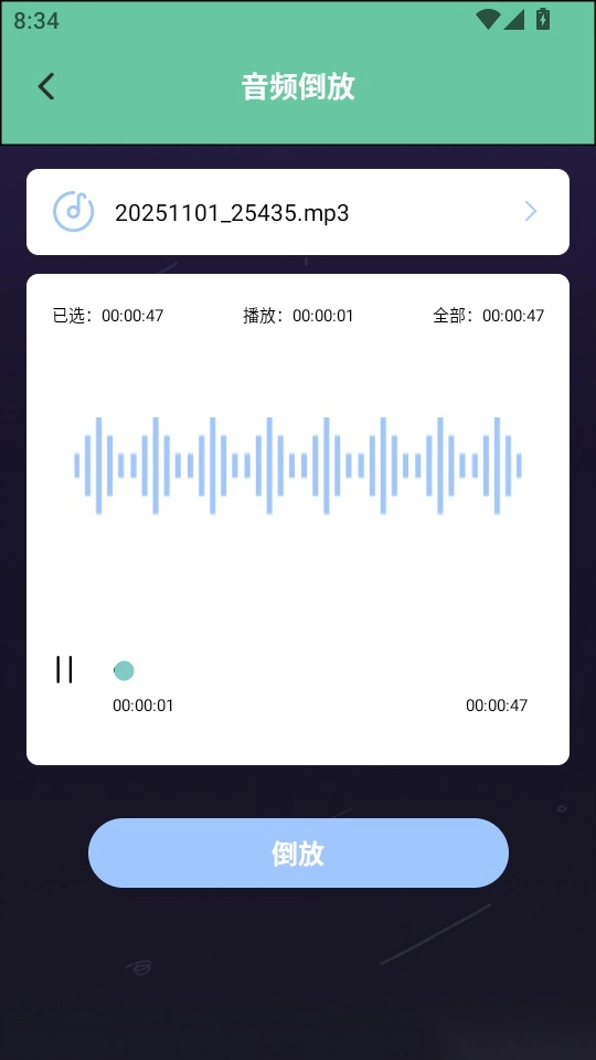 5.最后进入音频倒放编辑界面,点击“倒放”功能按钮就可以自动进行转换了