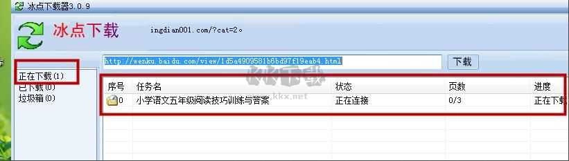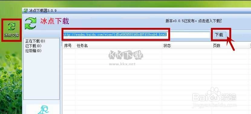 3、打开“冰点文库”程序,在指定输入框粘贴刚刚复制的链接,点击“”按钮开始处理