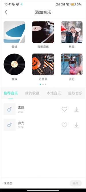 2、在素材库页面,你可以选择系统预设音乐或导入本地曲目作为背景音乐。