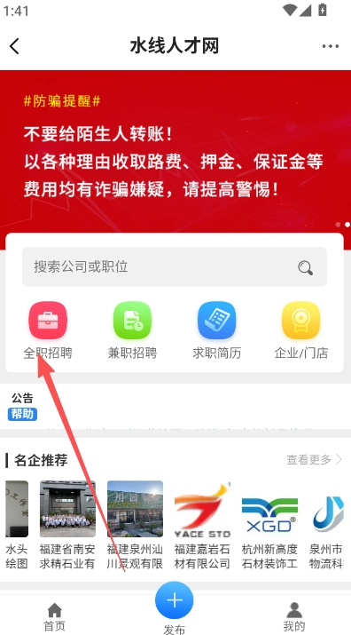 2、选择招聘版块的全职招聘或是兼职招聘。