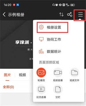 2)点击右上角更多设置图标,进入【相册设置】选项