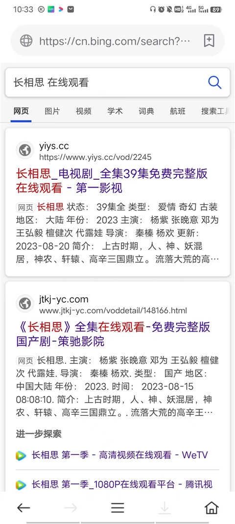 2、点击感兴趣的影视剧,例如《长相思》进入详情页;