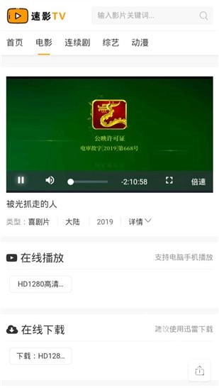速影TV免费安卓版是一款汇聚海量影视资源的手机视频播放利器,借助它,我们能轻松获取大陆、香港、台湾、美国、韩国、日本、泰国、新加坡等多个地区的影视内容,并且还可以在使用速影TV免费安卓版观看视频的同时进行相关操作。