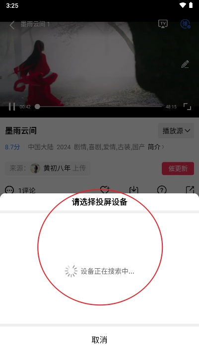 4、查找周边可连接的智能电视设备,请注意,只有当手机与电视处于同一WiFi网络环境时,投屏操作才能顺利完成。