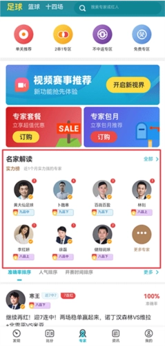 4、央视主持人、国足运动员等知名专家不定期免费解读比赛,核心数据情报随时查看;