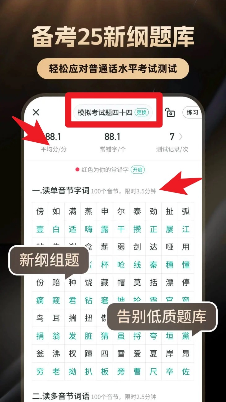 3、教师备考指导:针对教师、幼师资格考试的普通话要求,提供专项训练内容。