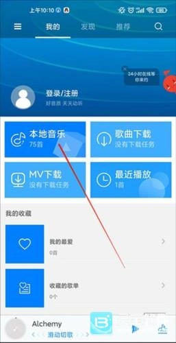 3、之后返回主界面中我的就可以看到本地音乐, 点击可以看到音乐列表