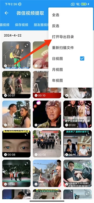 4. 在弹出的窗口中,点击打开导出目录,完成视频提取。