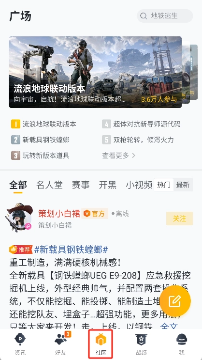 3、然后点击底部导航栏中的“社区”选项进入社区页面中。
