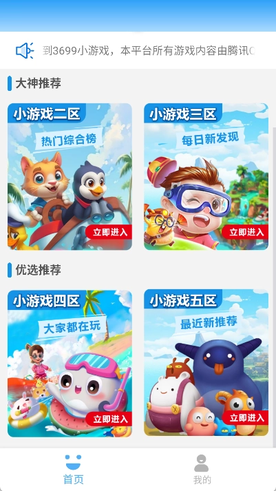 首页设有各类游戏分区,用户可浏览不同分区的游戏内容,挑选感兴趣的类型深入探索。