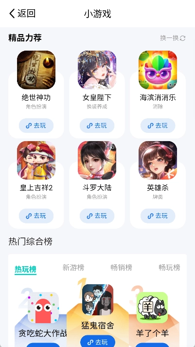 4. 自由搜索畅玩各种小游戏,帮助你打发无聊的时间,让你的休闲时刻变得充实。
