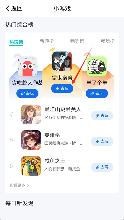 3、在选择游戏后点击“去玩”按钮将自动游戏到您的设备。