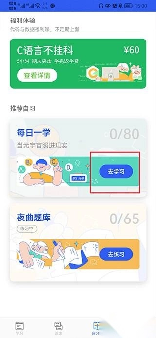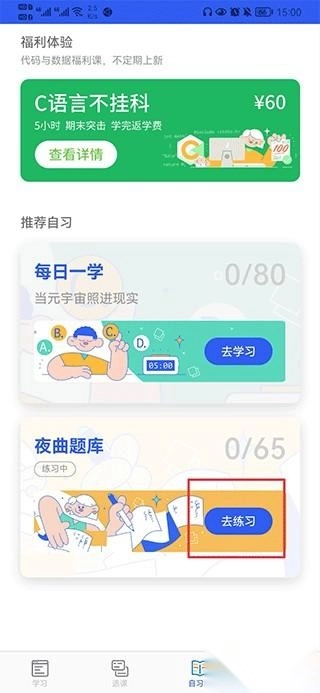 4、每日一学结束后,可点夜曲题库