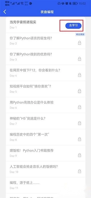 2、点击day1中的去学习
