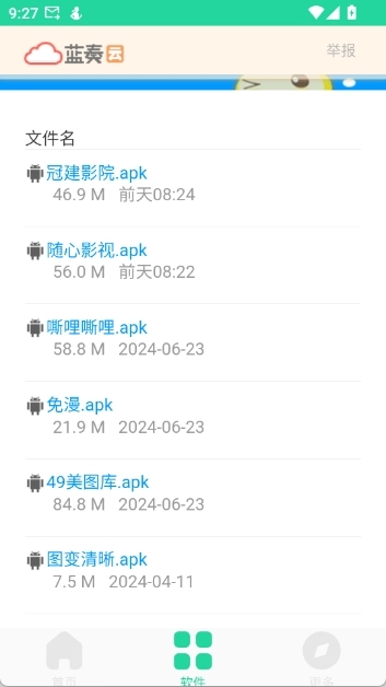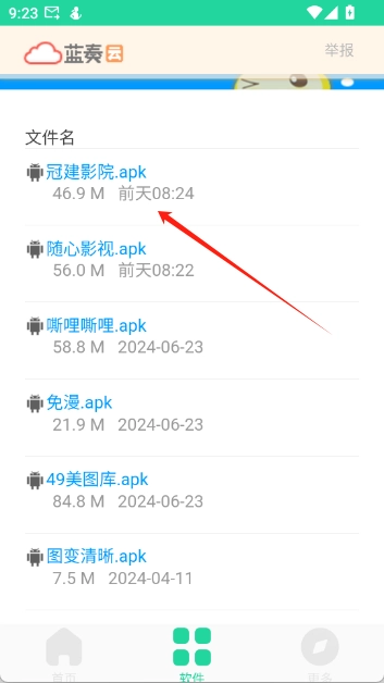 2、点击下方“软件”可以看到各种类型的优质应用资源提供给大家免费