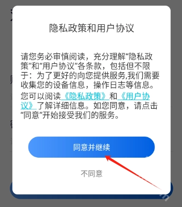 1. 接着打开易售后应用,点击“同意并继续”按钮