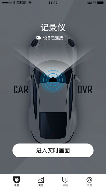 4. 可实时查看行车记录仪的当前界面,还能对设备的录像状态进行控制并执行拍照操作;