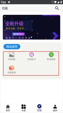 6、“功能”页面包含在线影视、影视搜索以及快递查询功能,直接点开就可以使用。