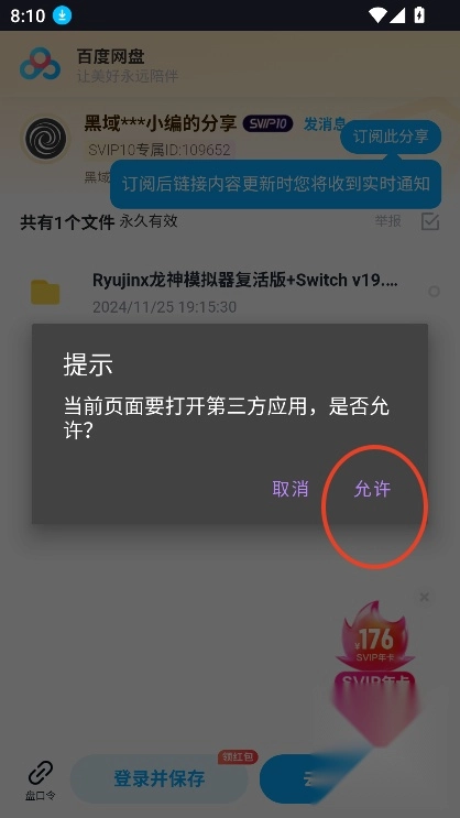 6、点击,即可跳转到第三方网盘进行,点击允许即可