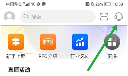 1. 打开阿里卖家手机版应用,登录账号进入首页后,点击页面右上角的客服图标。