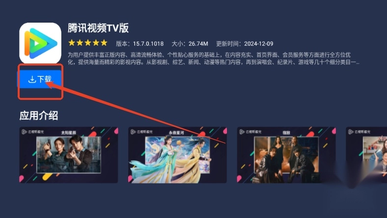 2、一键安装:用户只需简单操作,即可将心仪的应用轻松安装到电视上,省去了繁琐的配置步骤。