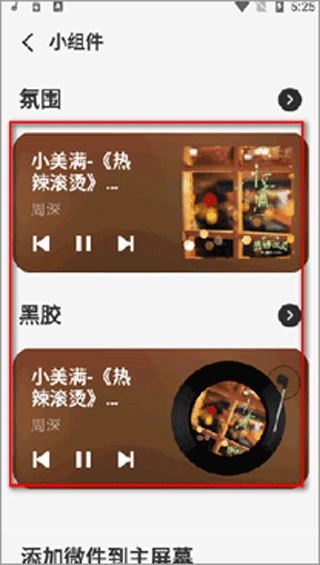 2、接着就可以添加到小组件中,在小组件中控制音乐