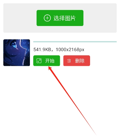 3、选好图片后,图片会出现在列表中,点击“开始”按钮。
