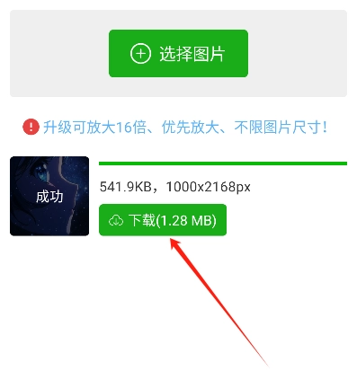 6、放大结束后,可以将放大好的图片下来保存到手机中。